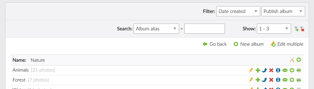 A custom password can optionally protect each album. This allows you to create photo albums available only for certain people. A common use case for this feature would be a professional photographer's website, which shares photos with his customer after the photo session.
